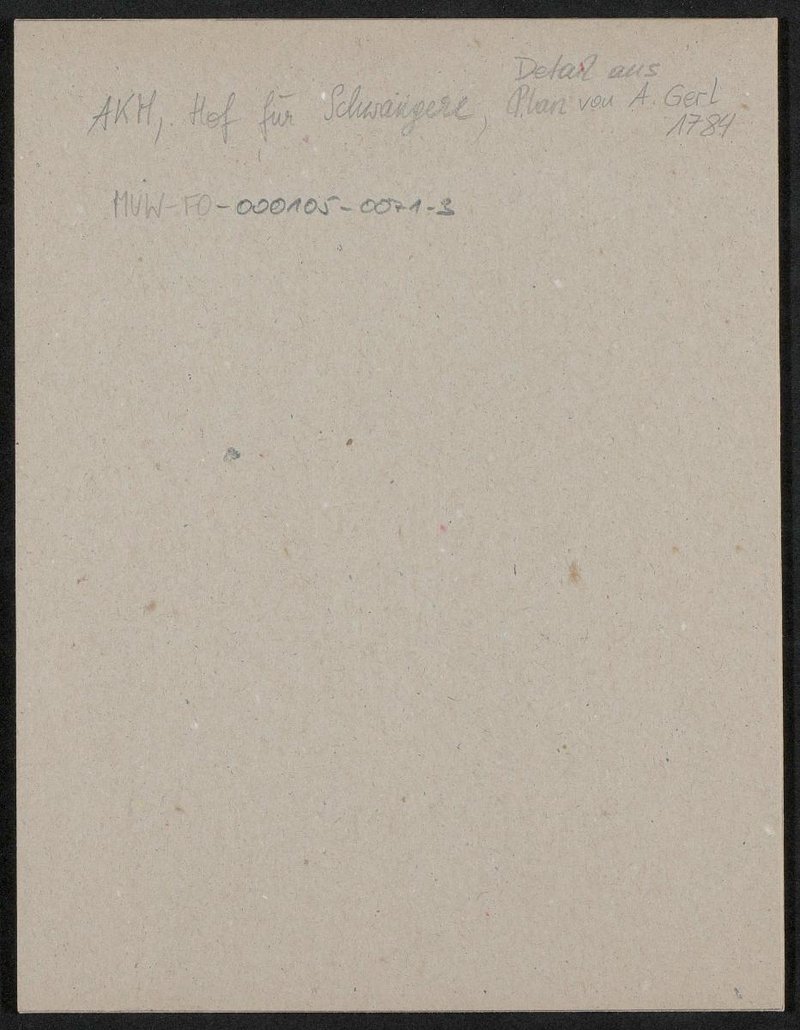 Der Auszug ist dem Grundriss des k.k. Allgemeinen Krankenhauses und des Narrenturms entnommen. Er wurde für eine nicht spezifizierbare Ausstellung verwendet.