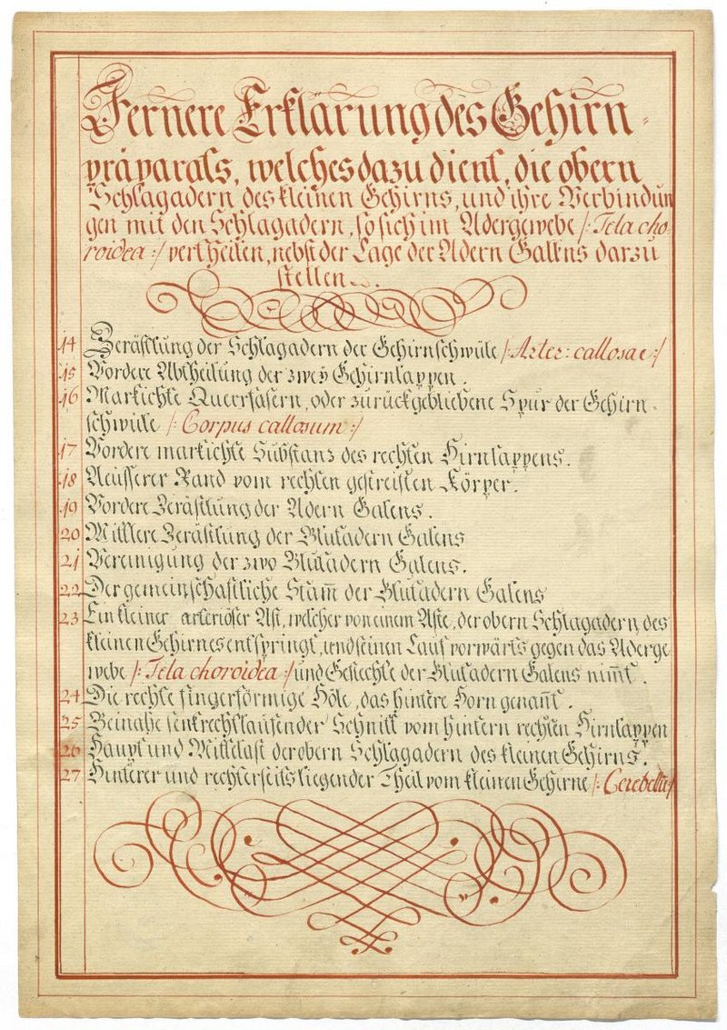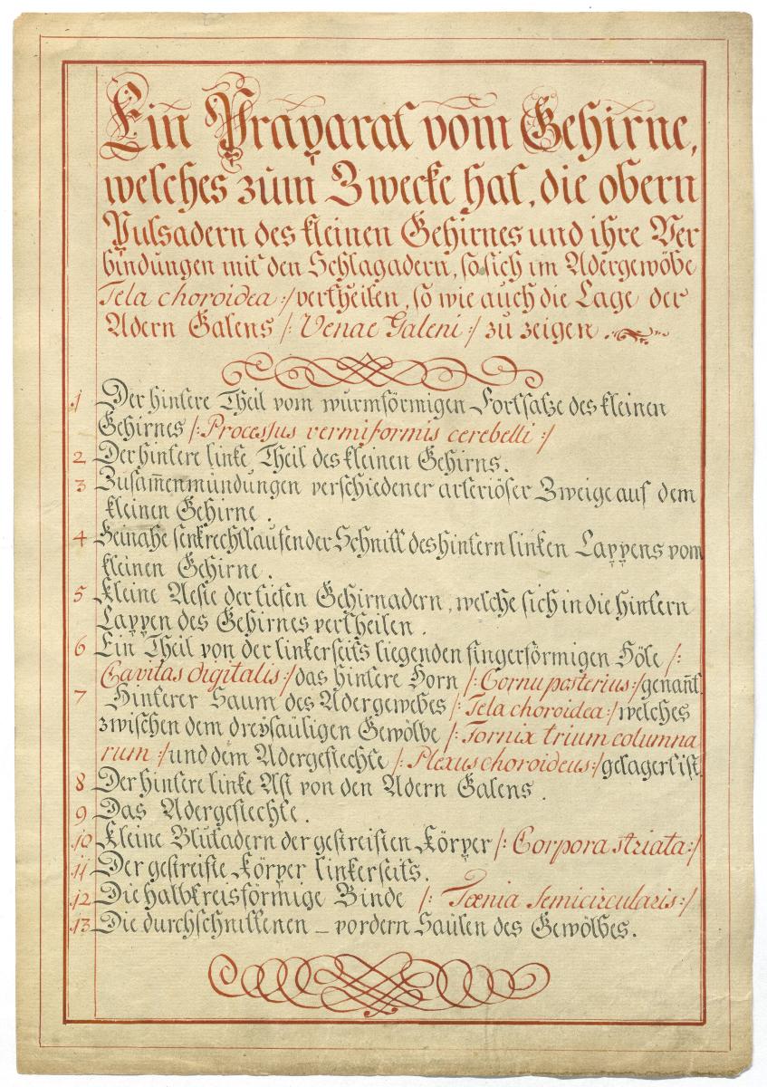 Der Text ist die ergänzende Beschreibung in deutscher Sprache zum anatomischen Wachsmodell des Gehirns.