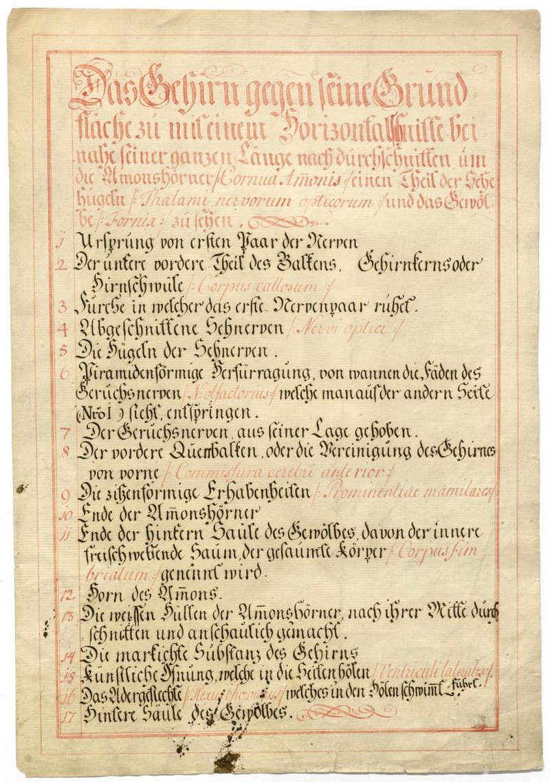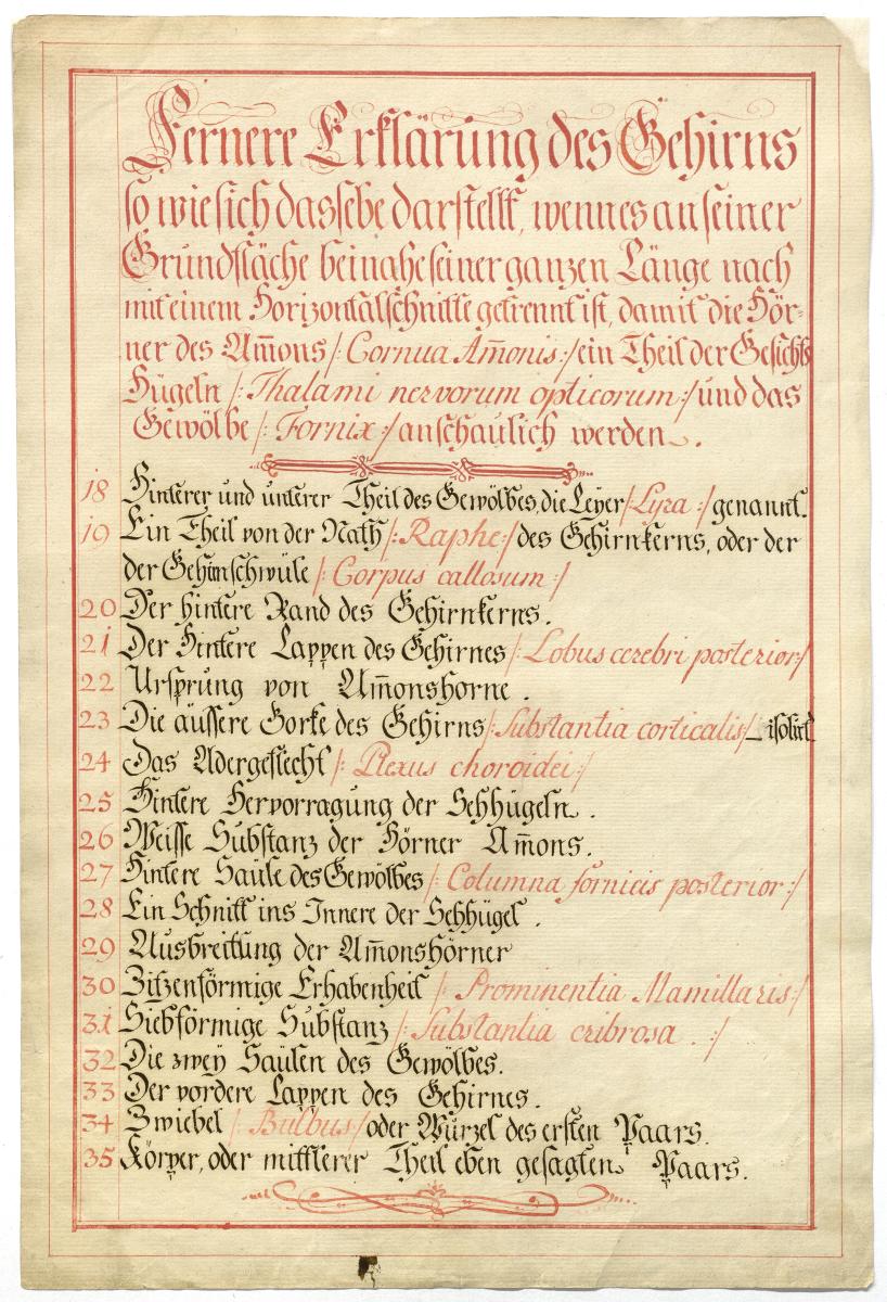 Der Text ist die ergänzende Beschreibung in deutscher Sprache zum anatomischen Wachsmodell der Sehbahn.