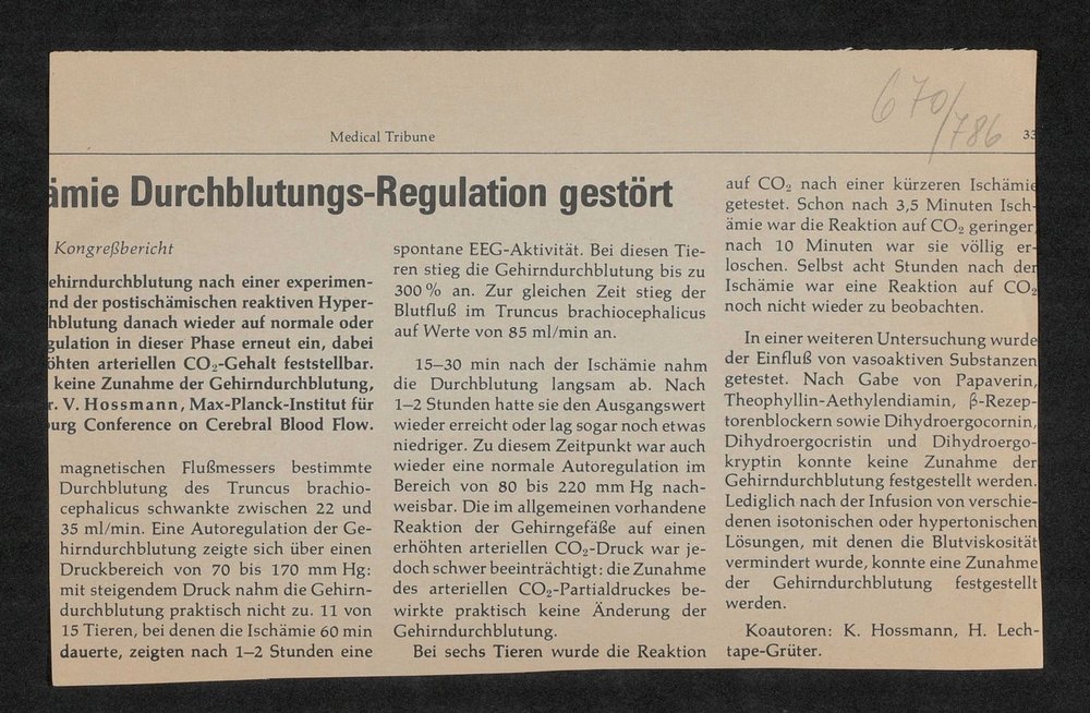 Zeitungsausschnitt aus einer unbekannten Ausgabe der englischsprachigen Fachzeitschrift Medical Tribune.