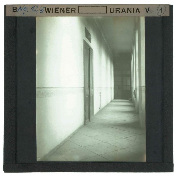 Das Glasdiapositiv stammt möglicherweise aus der Urania Lichtbildsammlung. Die Platten sind womöglich von Lainer und Hrdlicka hergestellt worden.