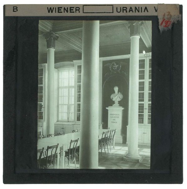 Das Glasdiapositiv stammt möglicherweise aus der Urania Lichtbildsammlung. Die Platten sind womöglich von Lainer und Hrdlicka hergestellt worden.