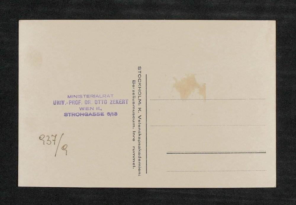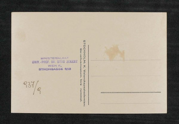 Rückseitig befindet sich ein Stempel von Ministerialrat Otto Zekert, Wien.