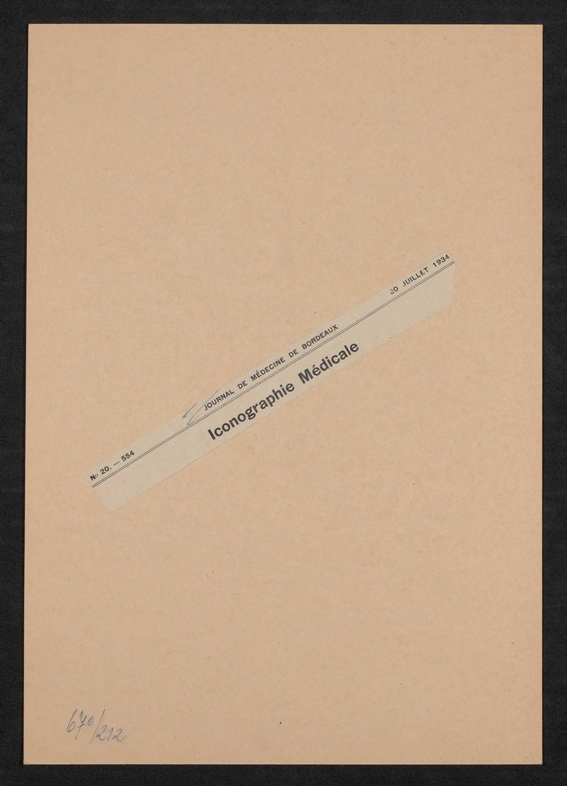 Die Abbildung ist der Eastern Daily Press, 16. Mai 1934, entnommen worden. Rückseitig ist ein Ausschnitt aus Journal de Médecine de Bordeaux, Nr. 20, 15. Juli 1934, angebracht.