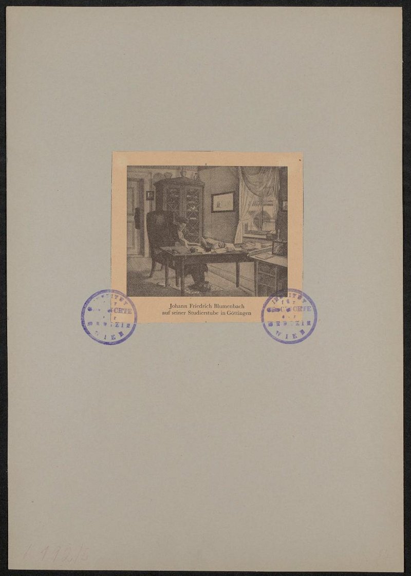 Dem Bild lag ein Glasgemälde von Heinrich Friedrich Wedemeyer zugrunde. Vorderseitig wurden zwei Stempel des Institutes für Geschichte der Medizin, Wien, angebracht.