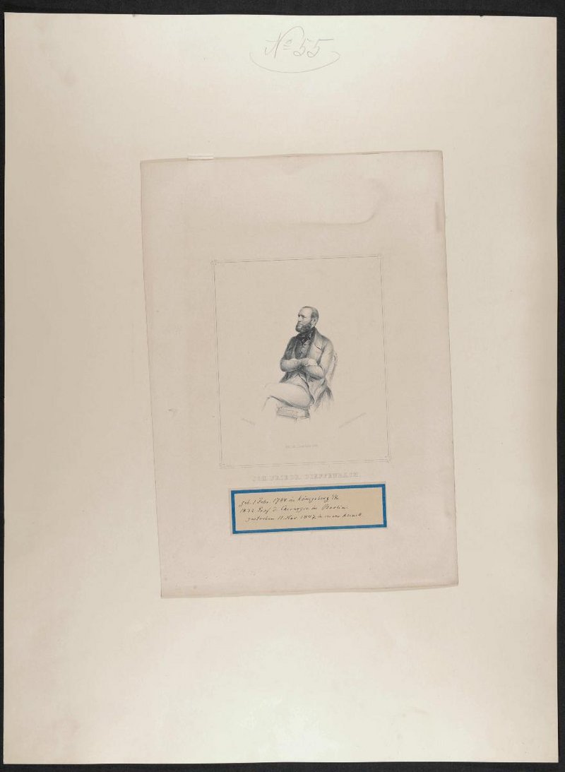 Die Lithografie wurde von Carl Mittag, Berlin, angefertigt, vom Königlichen Lithografischen Institut, Berlin, gedruckt und bei T. Romolini, Berlin, verlegt. Rückseitig befindet sich ein Stempel der Gesellschaft der Ärzte in Wien, Wien.