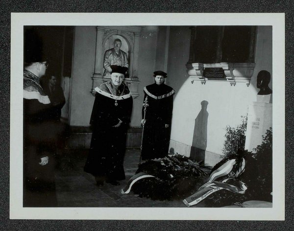 Zu sehen sind: Franz Theodor Brücke (1. von links), Johann Radon (Mitte). Fotograf:in unbekannt.