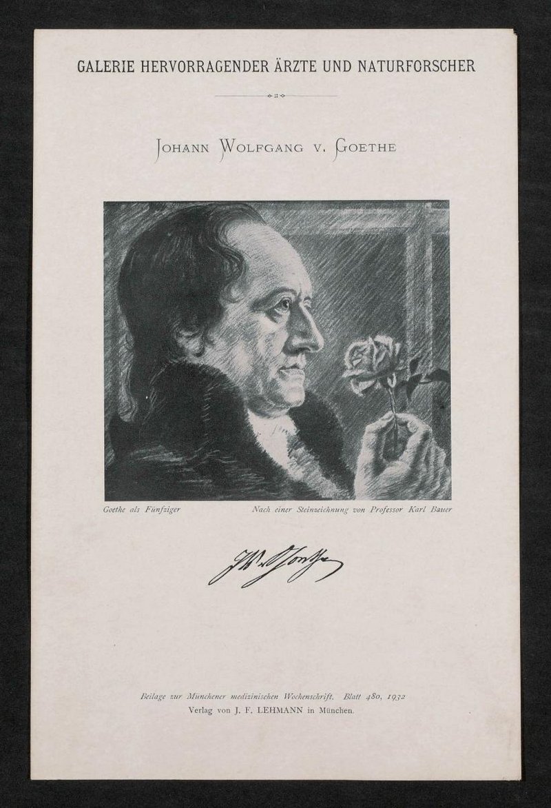 Auszug aus: Galerie hervorragender Ärzte und Naturforscher, in: Beilage zur Münchener medizinischen Wochenschrift, 1932, Bl. 480. Herausgegeben im Verlag von Julius Friedrich Lehmann. Der Druck wurde nach einer Steinzeichnung von Karl Bauer angefertigt. Auf der Rückseite befindet ein Stempel der Bibliothek der Gesellschaft der Ärzte, Wien.
