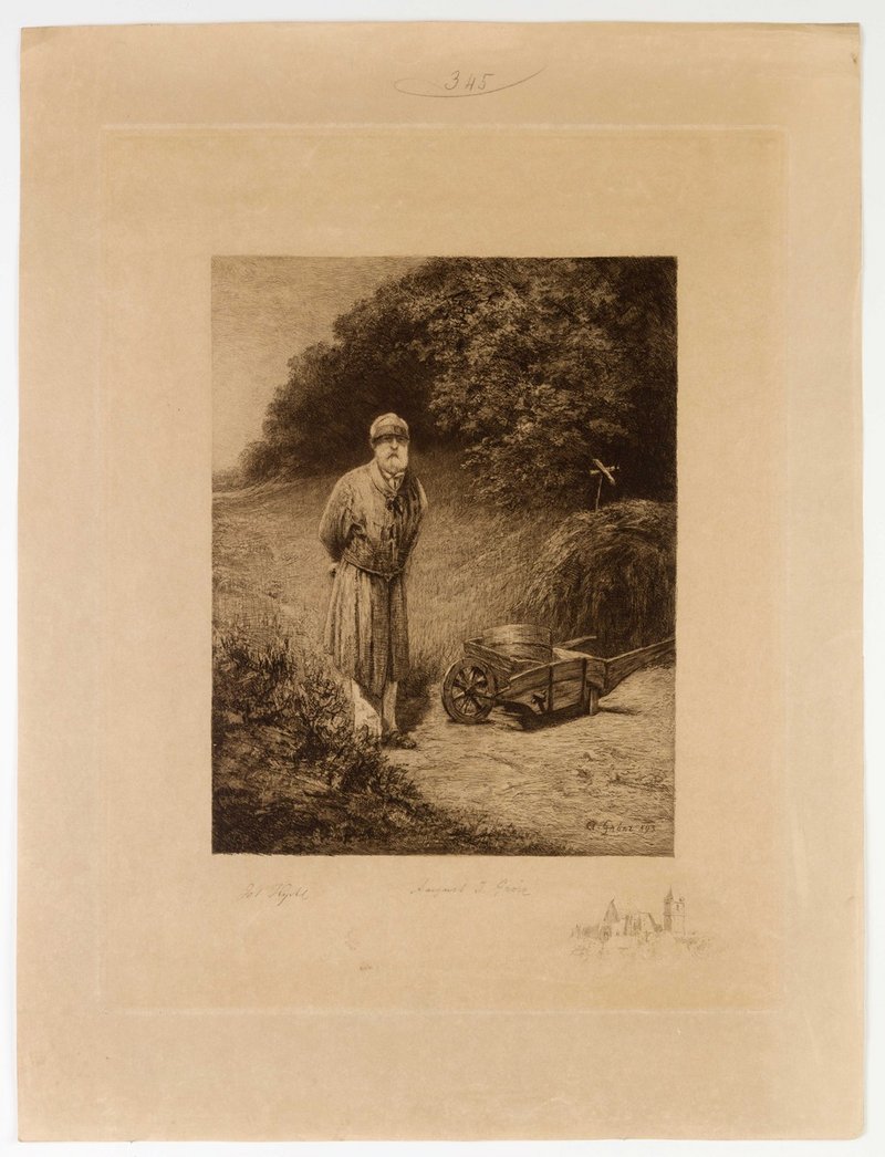 Die Radierung wurde von August Ignatz Grosz angefertigt. Unterhalb davon ist die Burg Perchtoldsdorf abgedruckt. Mit rückseitigem Hinweis auf die Leihgabe durch die Gesellschaft des Ärzte, Wien. Digitalisat von Reiner Riedler. Neg l 113/36, 37