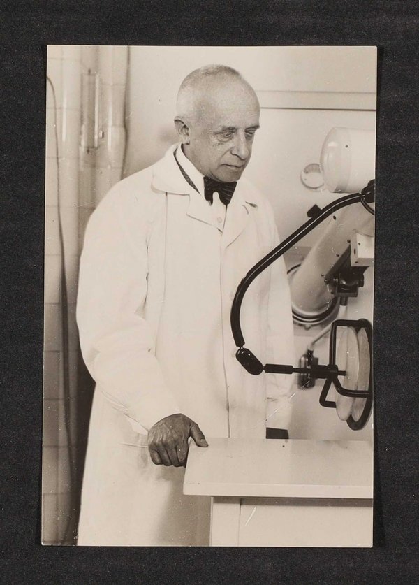Die Fotografie wurde von Dietrich und Co., Wien, angefertigt. Nicht sichtbar ist seine ebenfalls am Experiment beteiligte Mitarbeiterin Johanna Betzwarz.