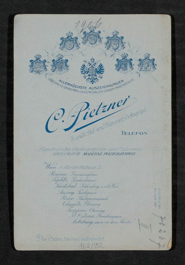 Die Fotografie wurde von Carl Pietzner, Wien, angefertigt.