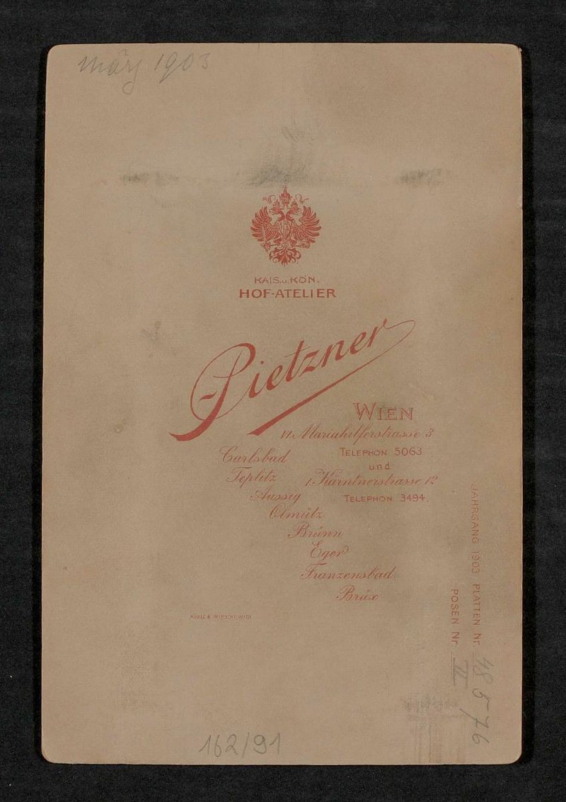 Die Fotografie wurde von Carl Pietzner, Wien, angefertigt.