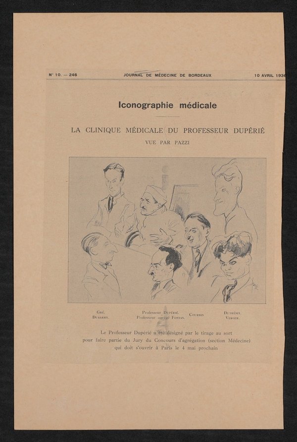 Karikatur von Pazzi aus: Journal de Médecine de Bordeaux, Nr. 10, 10. April 1936.
