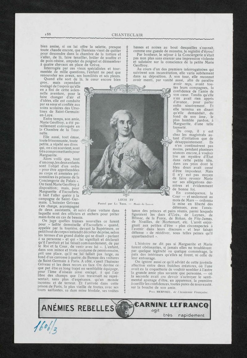 Ausschnitt aus: Chanteclair, Paris, S. 187. Die Karikatur wurde von Alphonse Chanteau angefertigt.