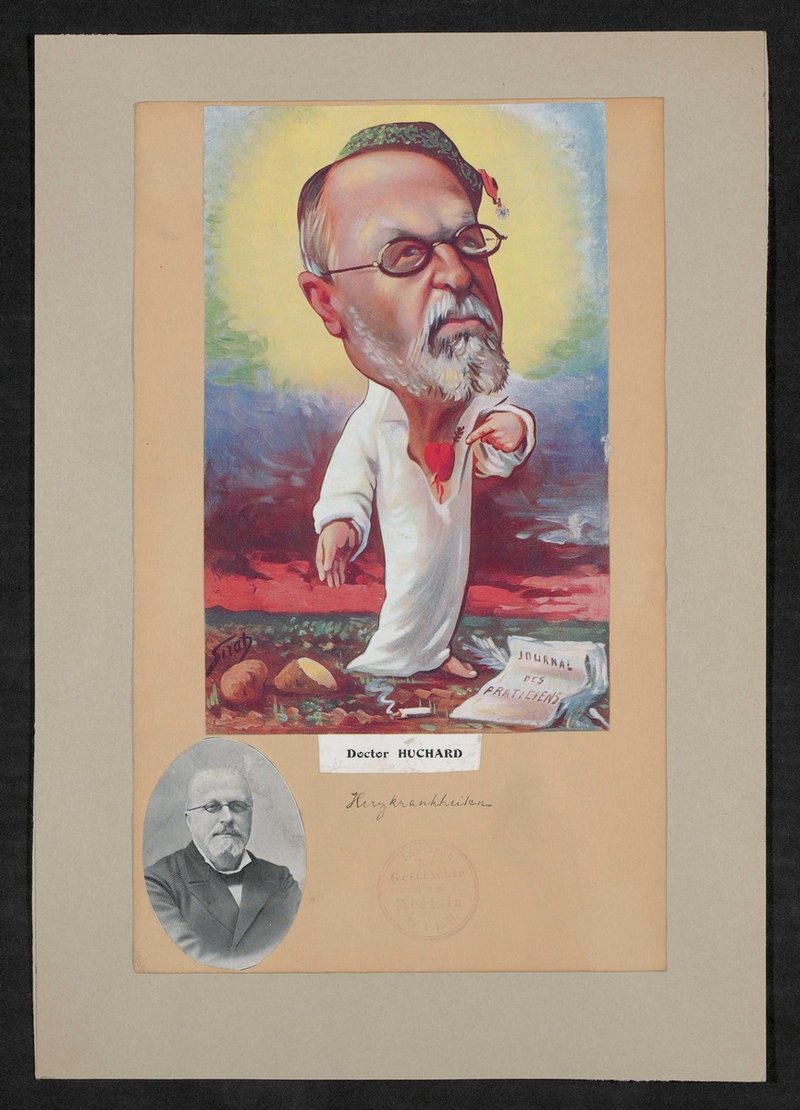 Die Karikatur ist von Joseph Sirat angefertigt und der französischsprachigen Zeitschrift Chanteclair, unbekannte Ausgabe, entnommen worden. Vorderseitig mit einem Stempel des Instituts für Geschichte der Medizin, Wien, versehen.