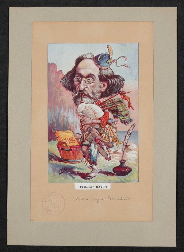Die Karikatur ist von Joseph Sirat angefertigt und der französischsprachigen Zeitschrift Chanteclair, März 1907, entnommen worden. Vorderseitig mit einem Stempel des Instituts für Geschichte der Medizin, Wien, versehen.