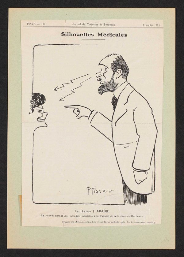 Karikatur von P. Figerov, aus: Journal de Médecine de Bordeaux, Nr. 27, 6. Juli 1913.