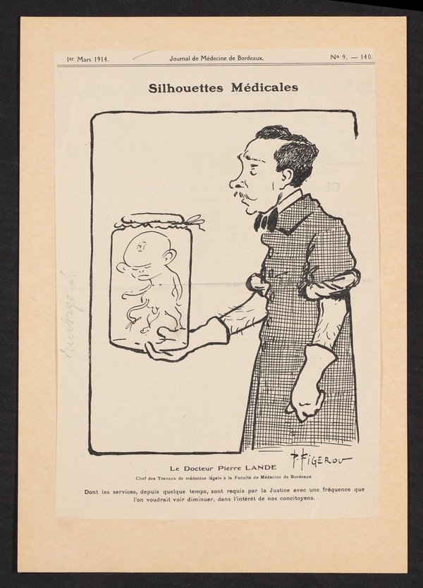 Karikatur von P. Figerov, aus: Journal de Médecine de Bordeaux, Nr. 9, 1. März 1914.