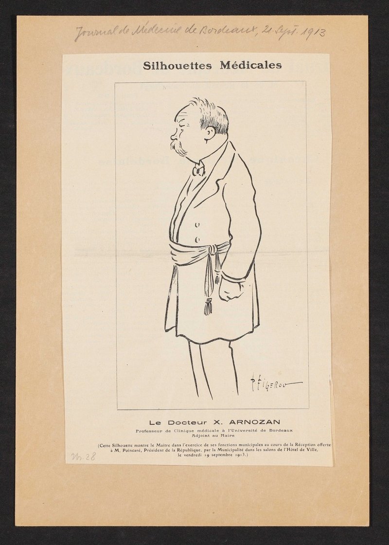 Karikatur vom Zeichner P. Figerov, aus: Journal de Médecine de Bordeaux, Nr. 28, 21. September 1913.