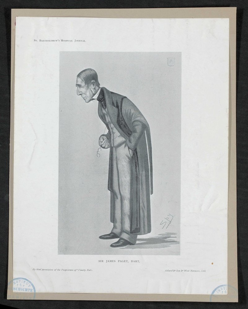 Als Vorlage diente ein Aquarell von Leslie Matthew Ward, alias Spy. Auszug aus: St. Bartholomew's Hospital Journal. Als Drucker waren Adland and Son and West Newman beteiligt. Vorderseitig mit zwei Stempeln des Institutes für Geschichte der Medizin, Wien, versehen.