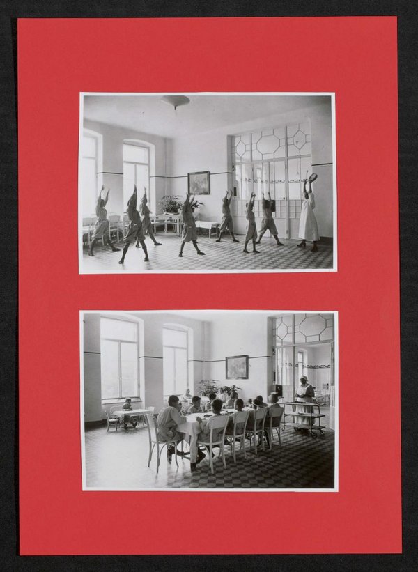 Mit einem Gemälde im Hintergrund, das Erwin Lazar zeigt. Zwei Reproduktionen von Fotografien von Franz Mayer, Wien.