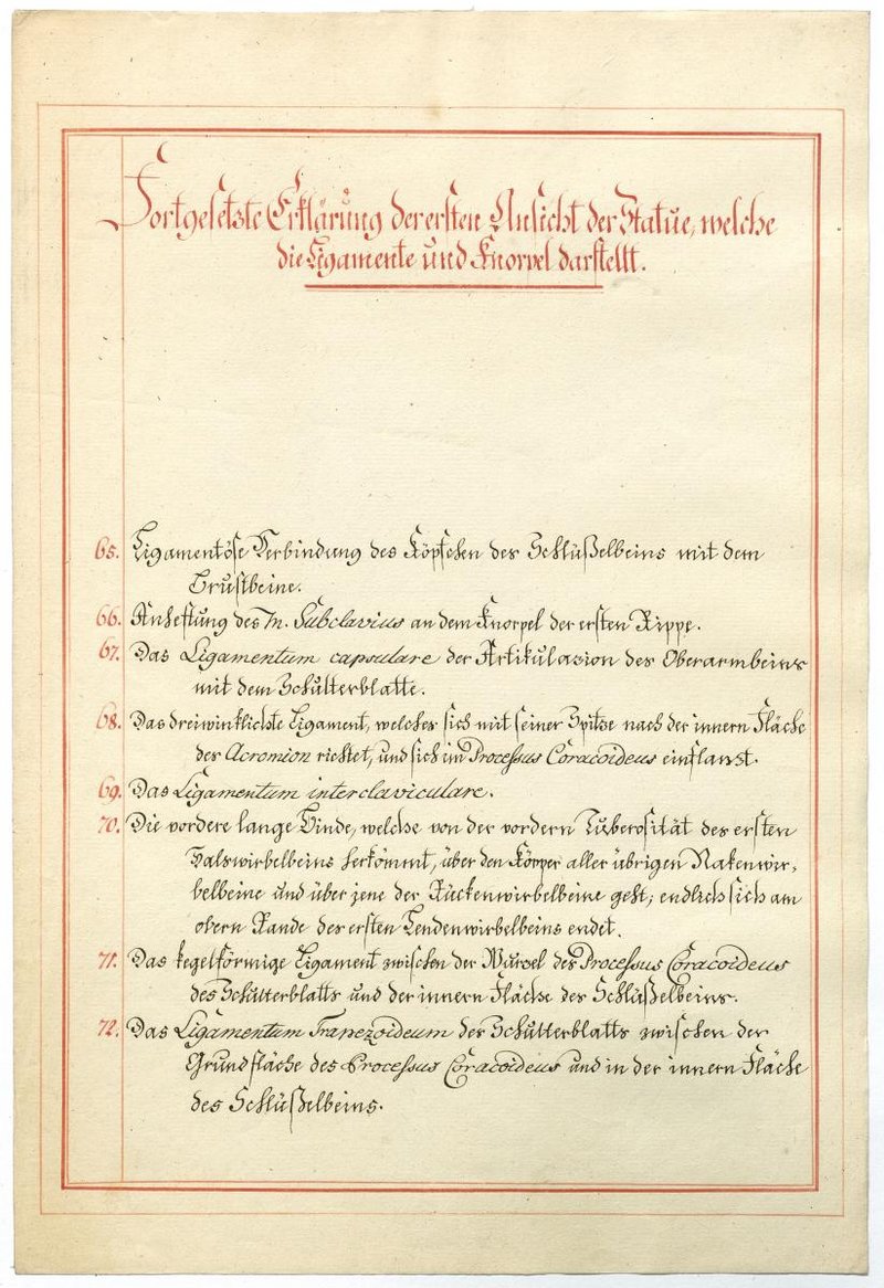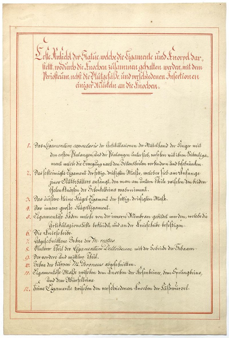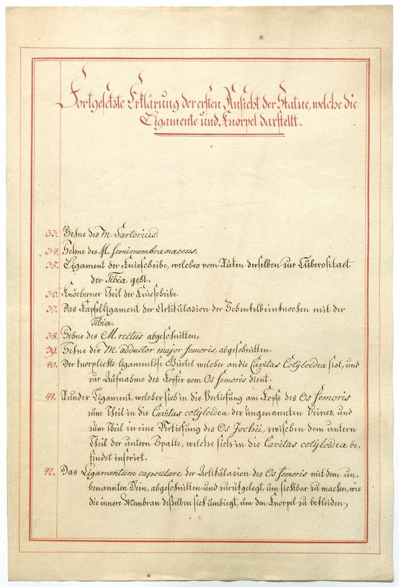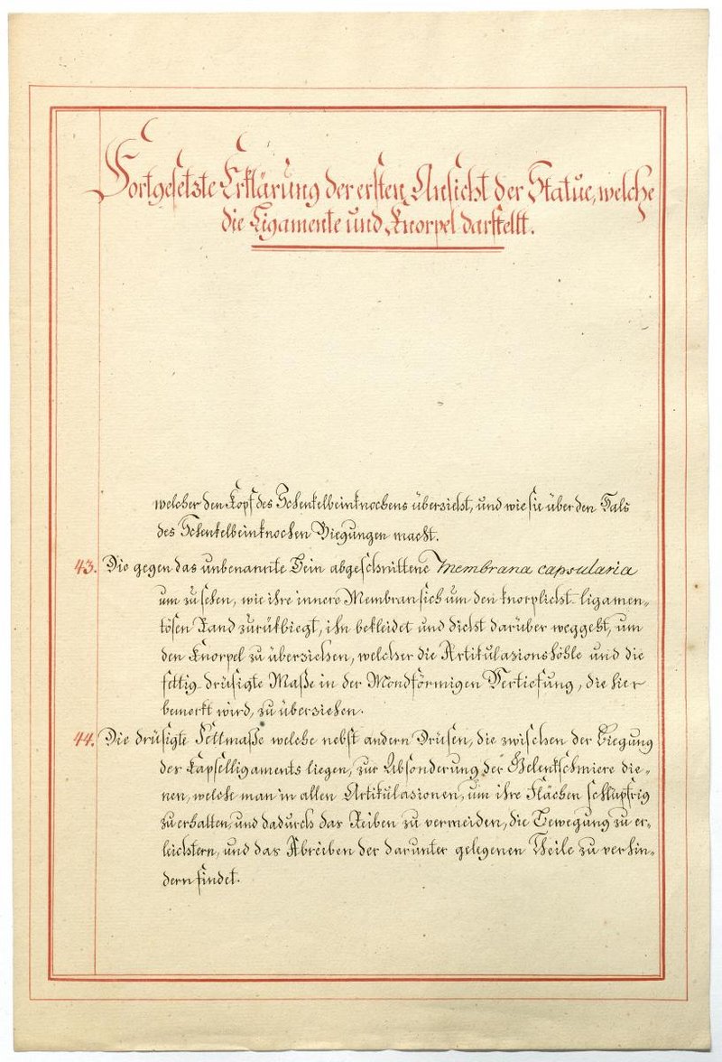 Der Text ist die ergänzende Beschreibung in deutscher Sprache zum anatomischen Wachsmodell der Knochenverbindungen.