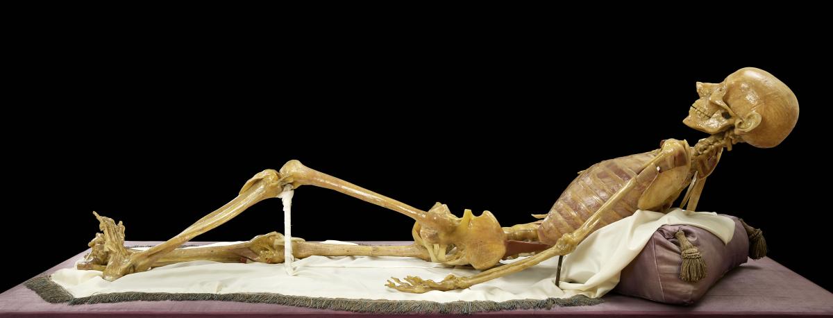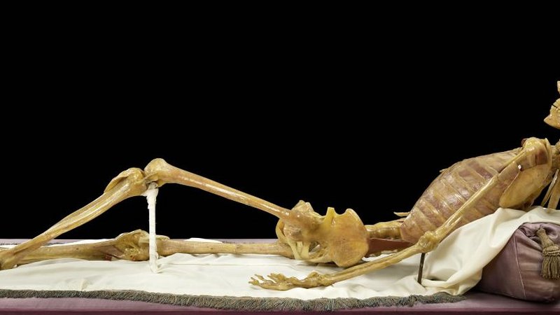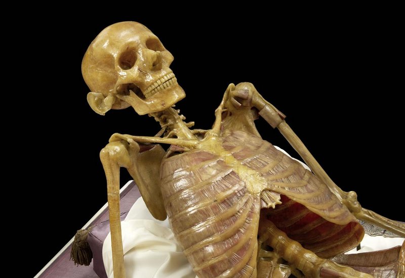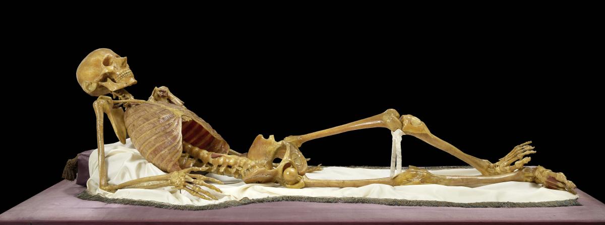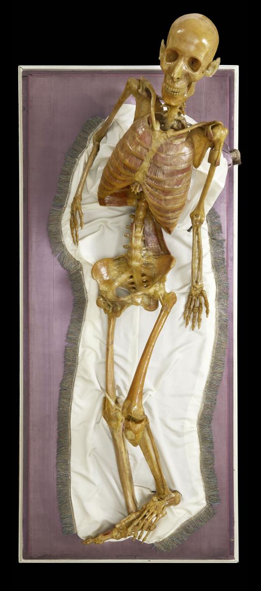 Objektmaß 60 x 76 x 175 cm Liegendes Wachsmodell - Vitrine im verschlossenen Zustand, ohne Tisch