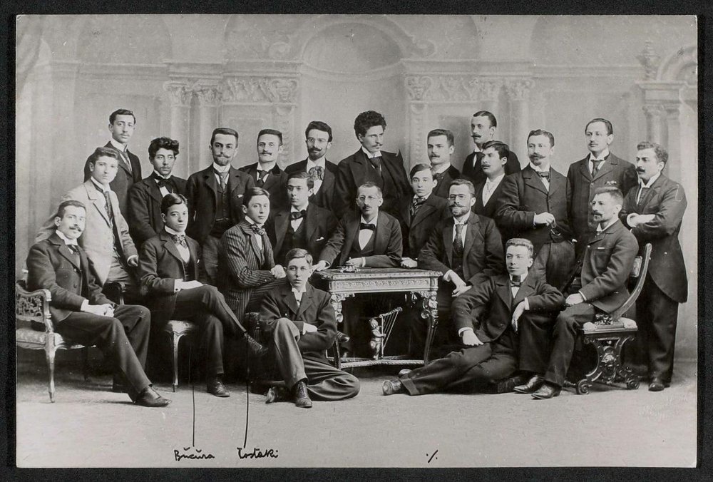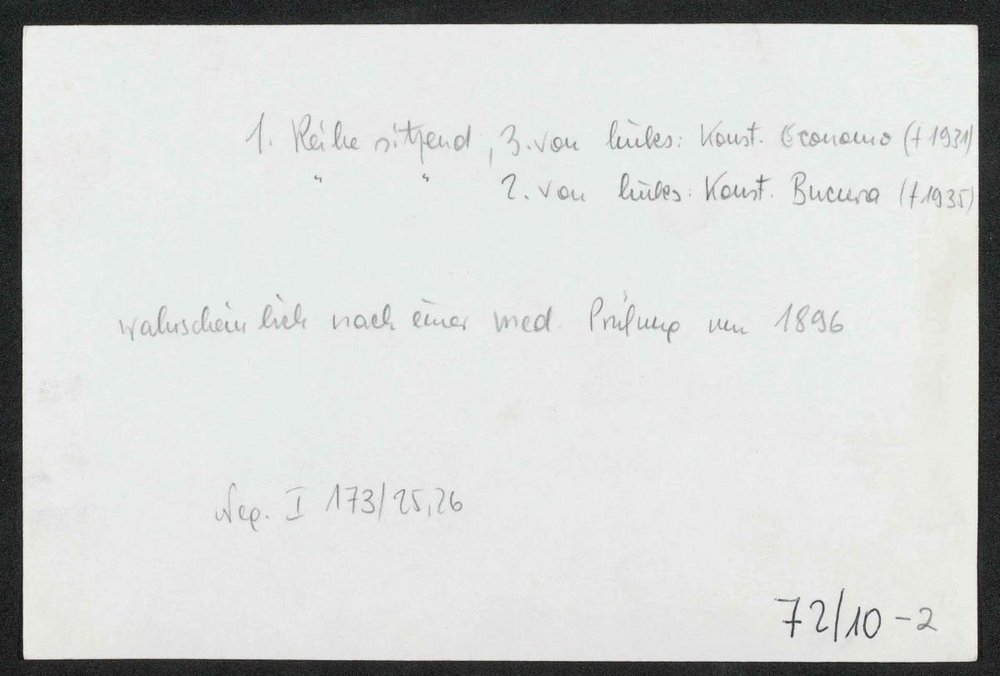 Konstantin Economo: 1. Reihe 3. von links; Konstantin Bucura: 1. Reihe 2. von links. Vorlage war eine Fotografie der k. u. k. Hof-Fotografin Rosa Jenik. Neg I 175/25, 26