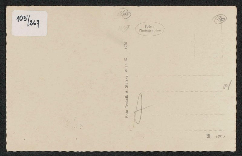 Die Postkarte wurde bei Adolf Stefsky, Foto-Technik, Wien, gedruckt.