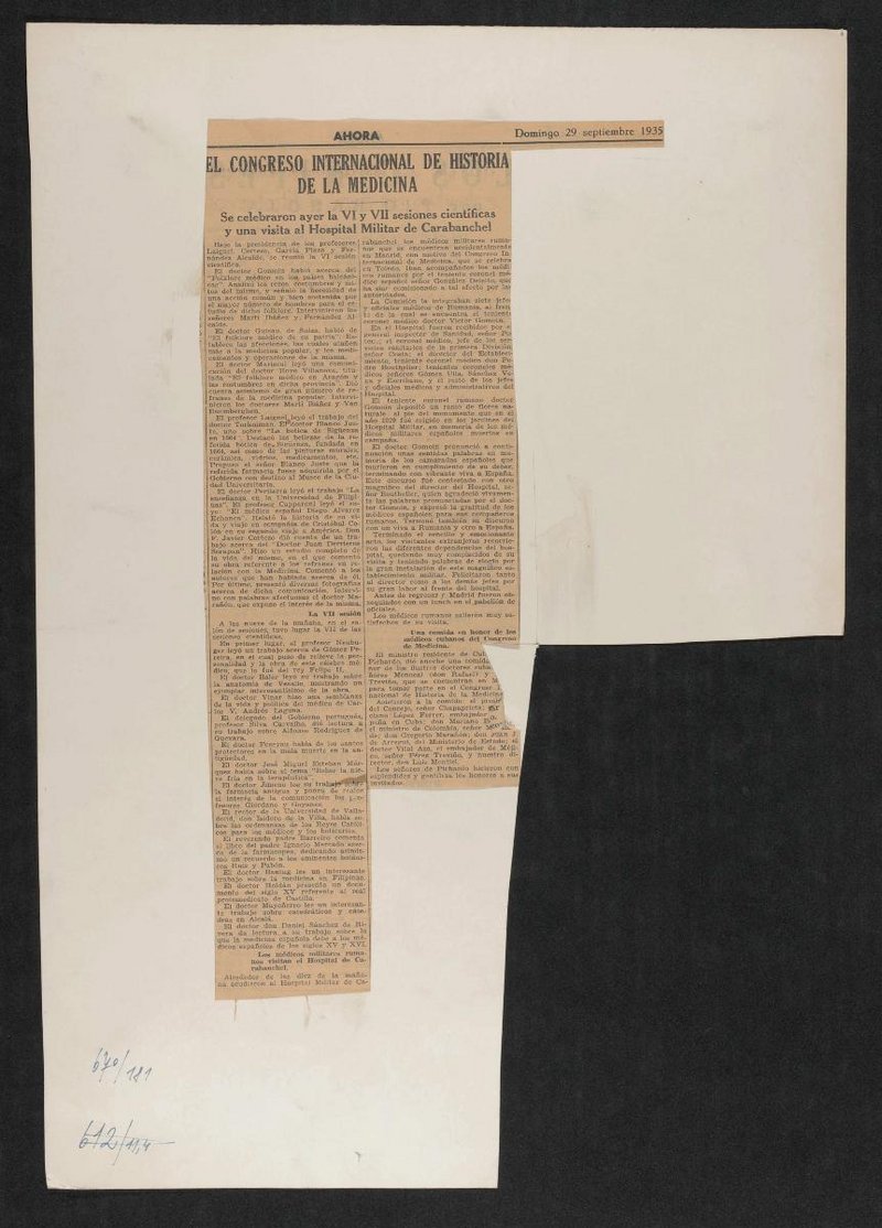 Ausschnitt aus: Ahora, 29. September 1935.