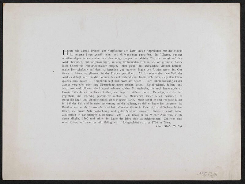 Als Kunstbeilage Nr. 76 in der Bildersammlung aus der Geschichte der Medizin, in: Deutsche Medizinische Wochenschrift, Nr. 14, 1912, veröffentlicht.