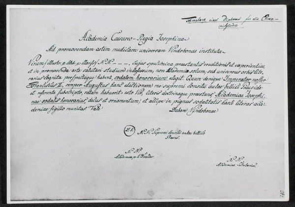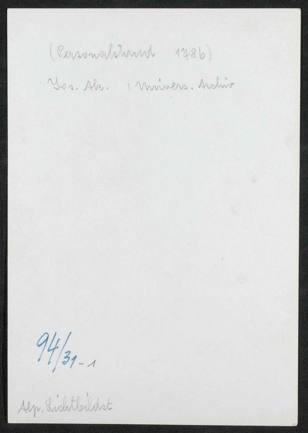 Reproduktion des Personalstandes 1786 der Josephsakademie. Stammt aus dem Universitätsarchiv Wien. Fotografie: Alpenland Lichtbildstelle. Neg. II/19