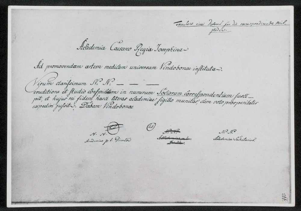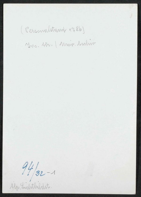 Reproduktion des Personalstandes 1786 der Josephsakademie aus dem Universitätsarchiv. Fotografie: Alpenland Lichtbildstelle. Neg. II/20