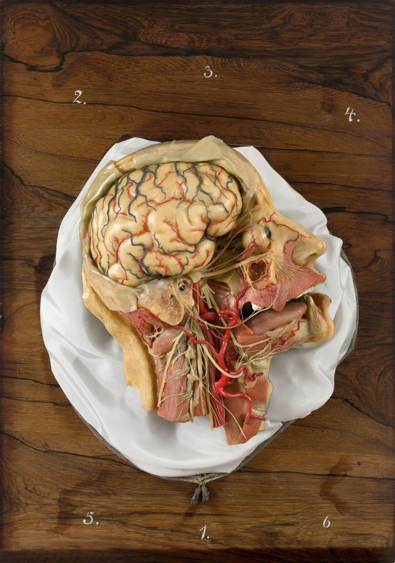 1. Darstellung der Topographie von Hirnnerven und Blutgefäßen an der rechten Seite eines Kopf-Halspräparates. 2. bis 6. Die Modelle fehlen.