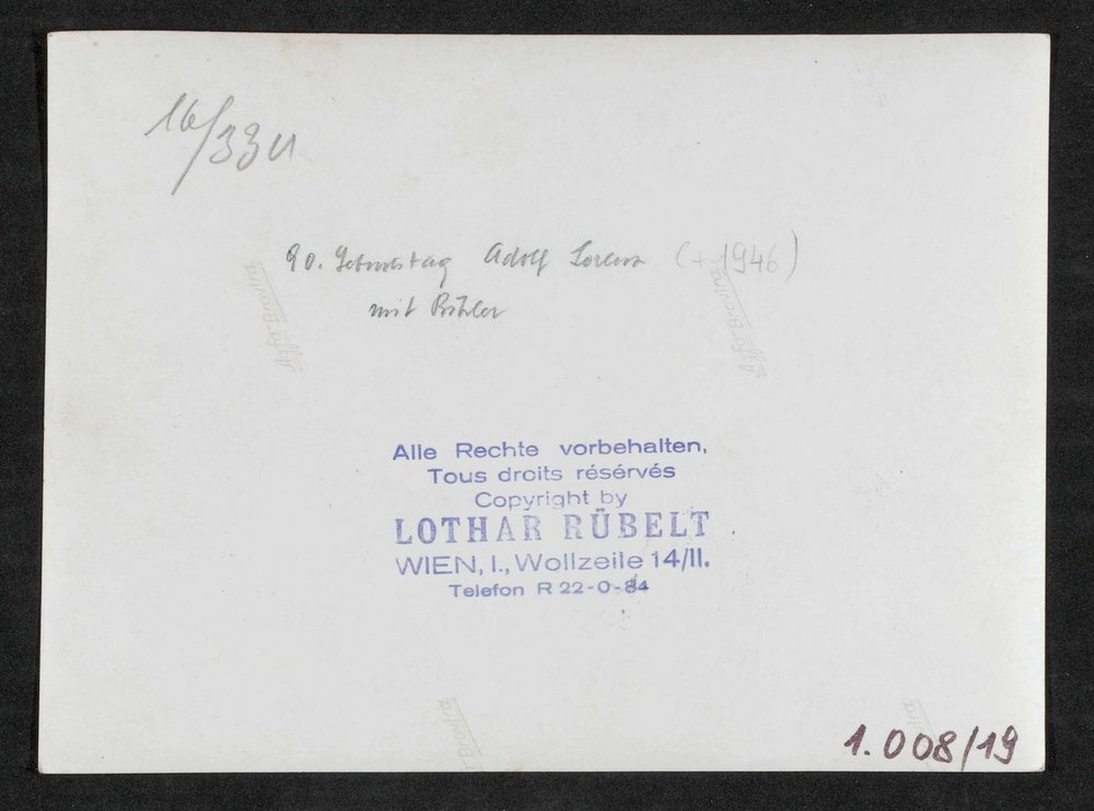 Das Bild wurde am 90. Geburtstag von Adolf Lorenz angefertigt. Neg III 134/1