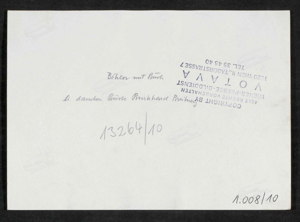 Das Bild wurde am 2. Dezember 1966 bei der Enthüllung von Lorenz Böhlers Büste im Ambrosi-Atelier im Augarten von Franz Votava aufgenommen. Die Büste von Lorenz Böhler wurde von Gustinus Ambrosi angefertigt.