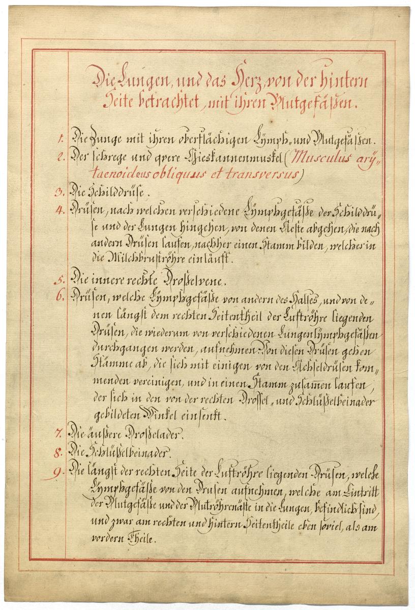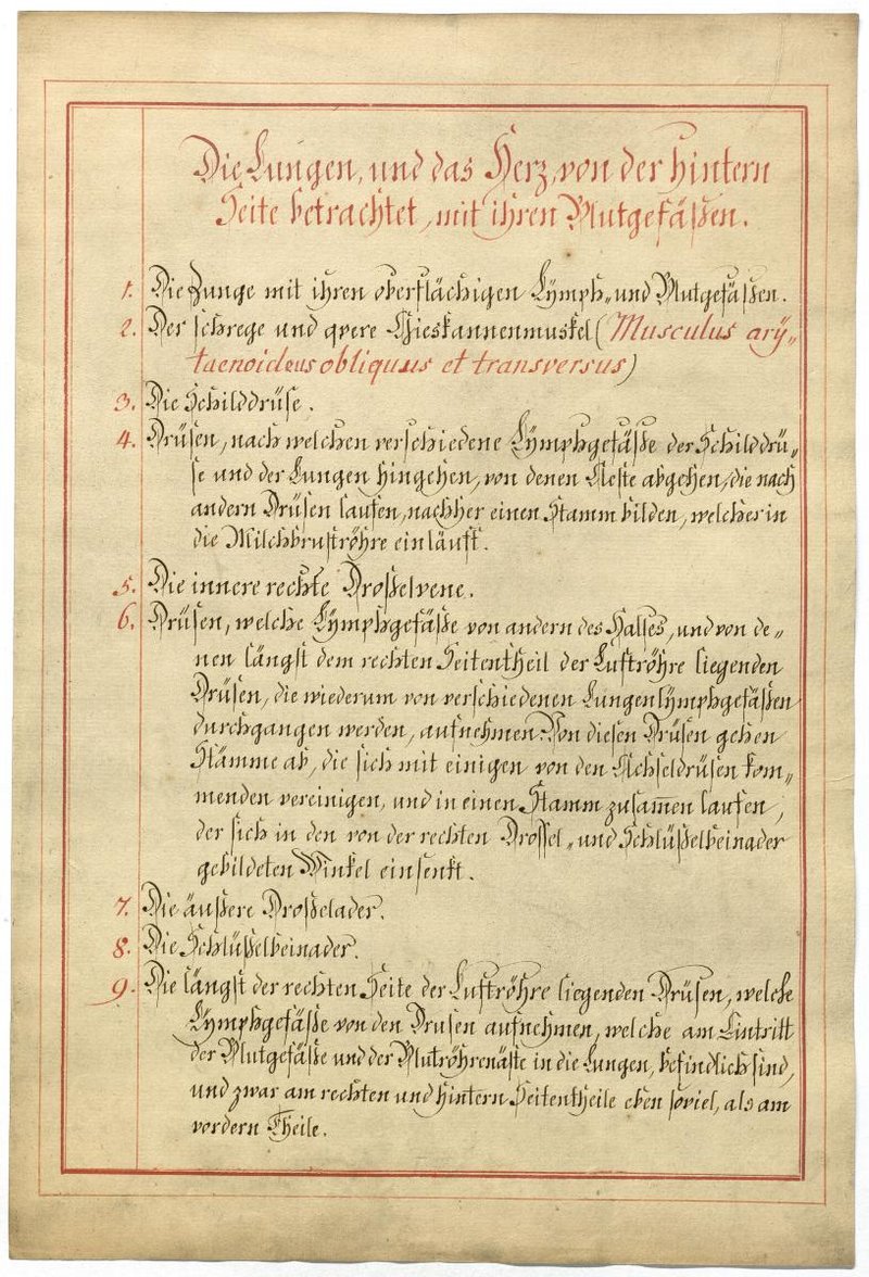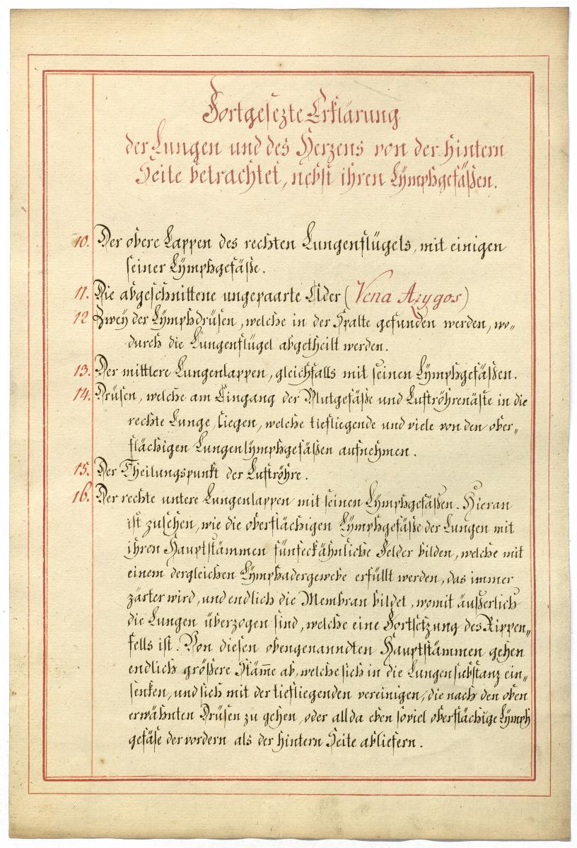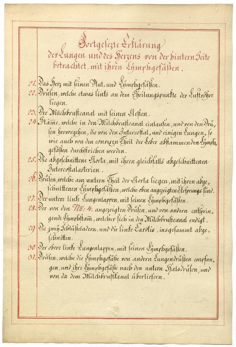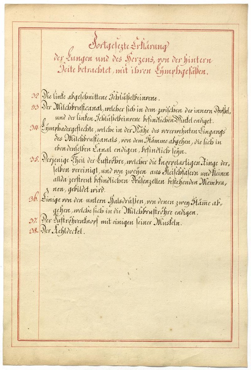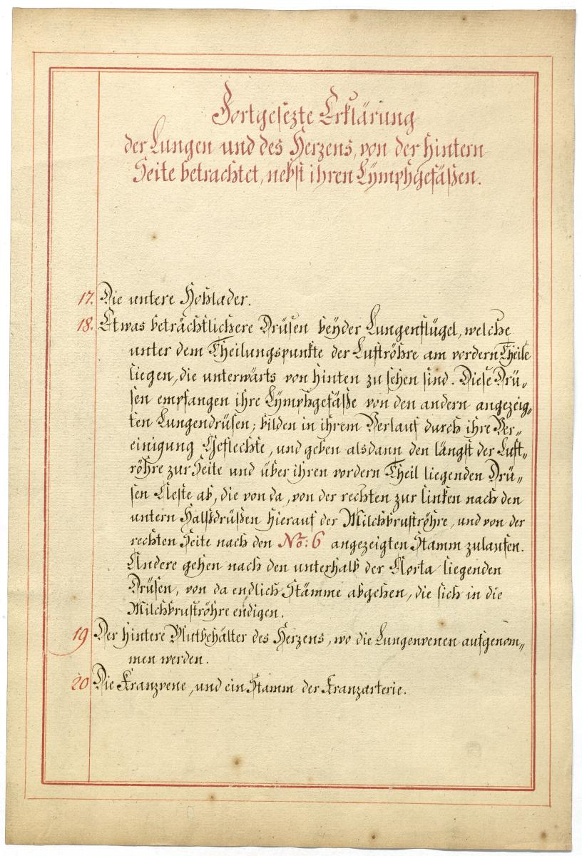 Der Text ist die ergänzende Beschreibung in deutscher Sprache zum anatomischen Wachsmodell der Lymphgefäße des Brustkorbs.