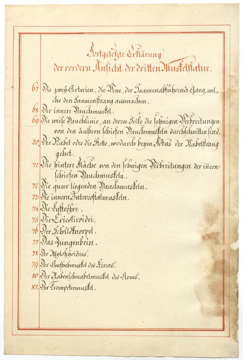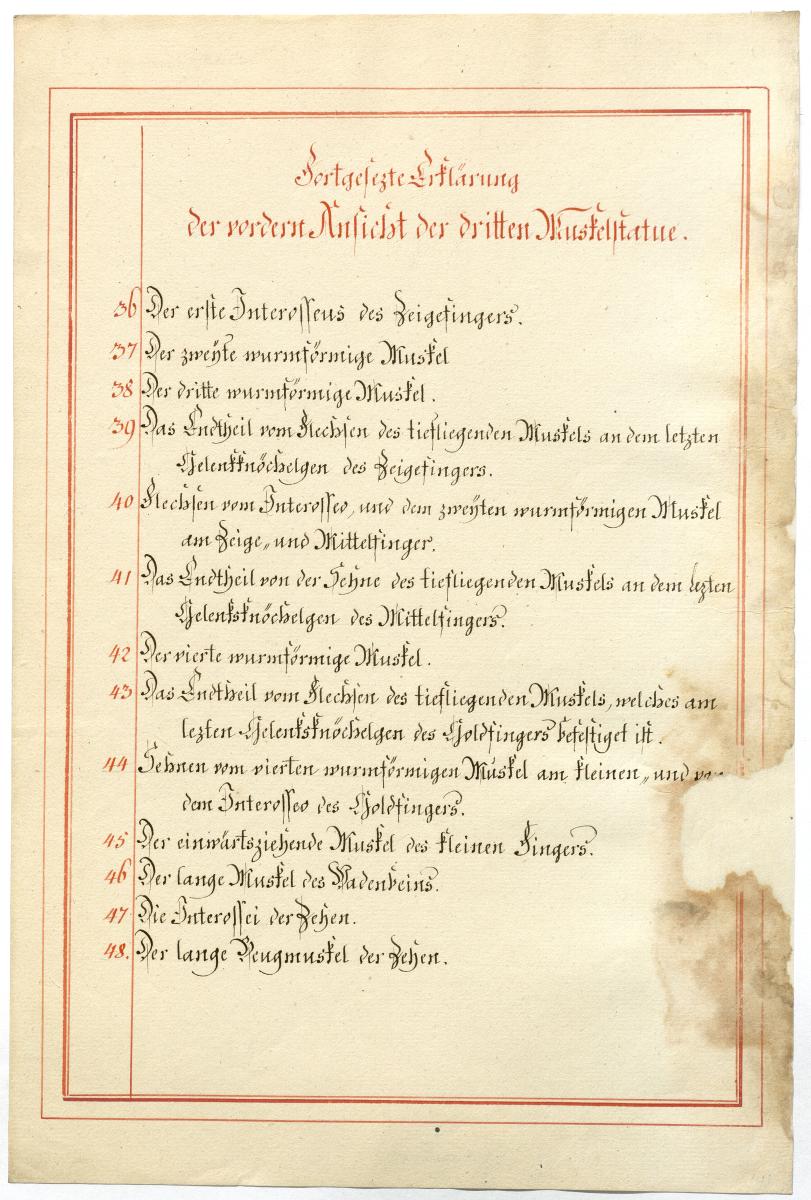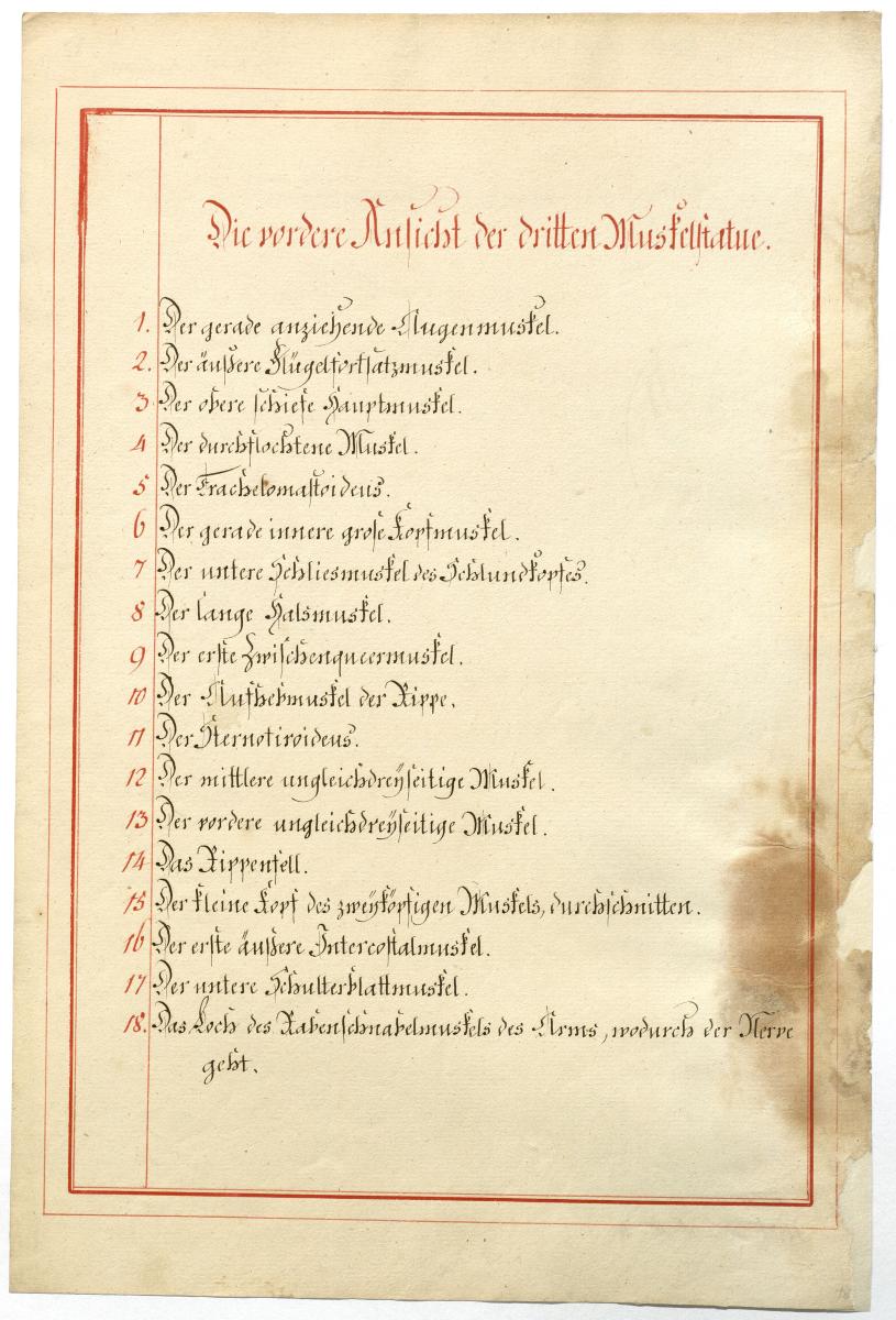Der Text ist die ergänzende Beschreibung in deutscher Sprache zum anatomischen Wachsmodell der tieferen Muskelschicht.
