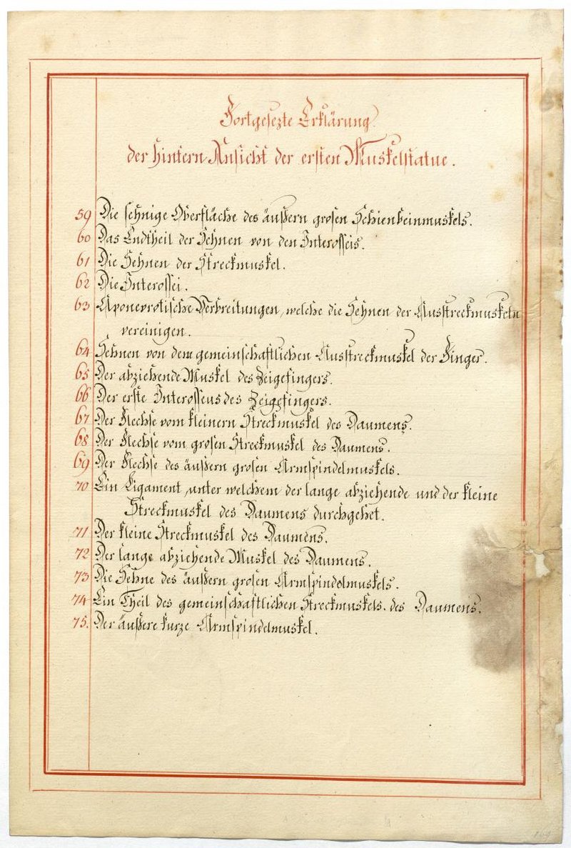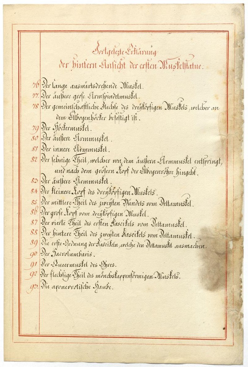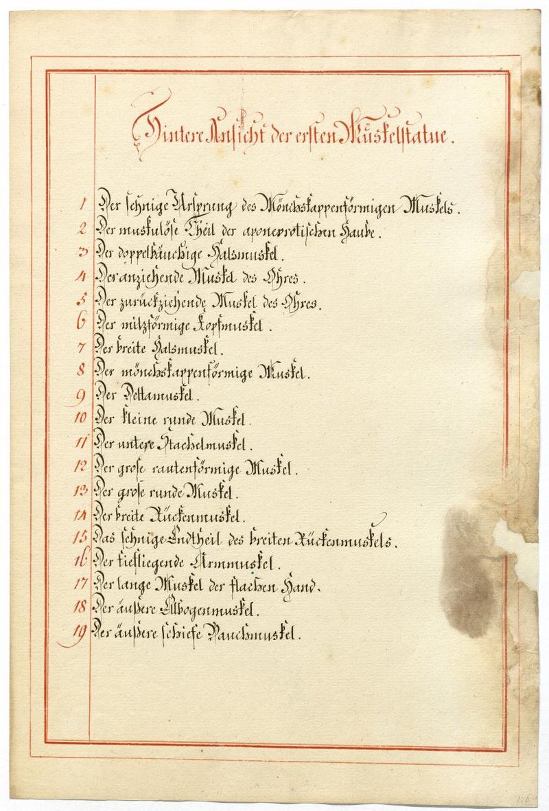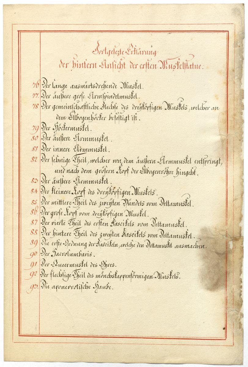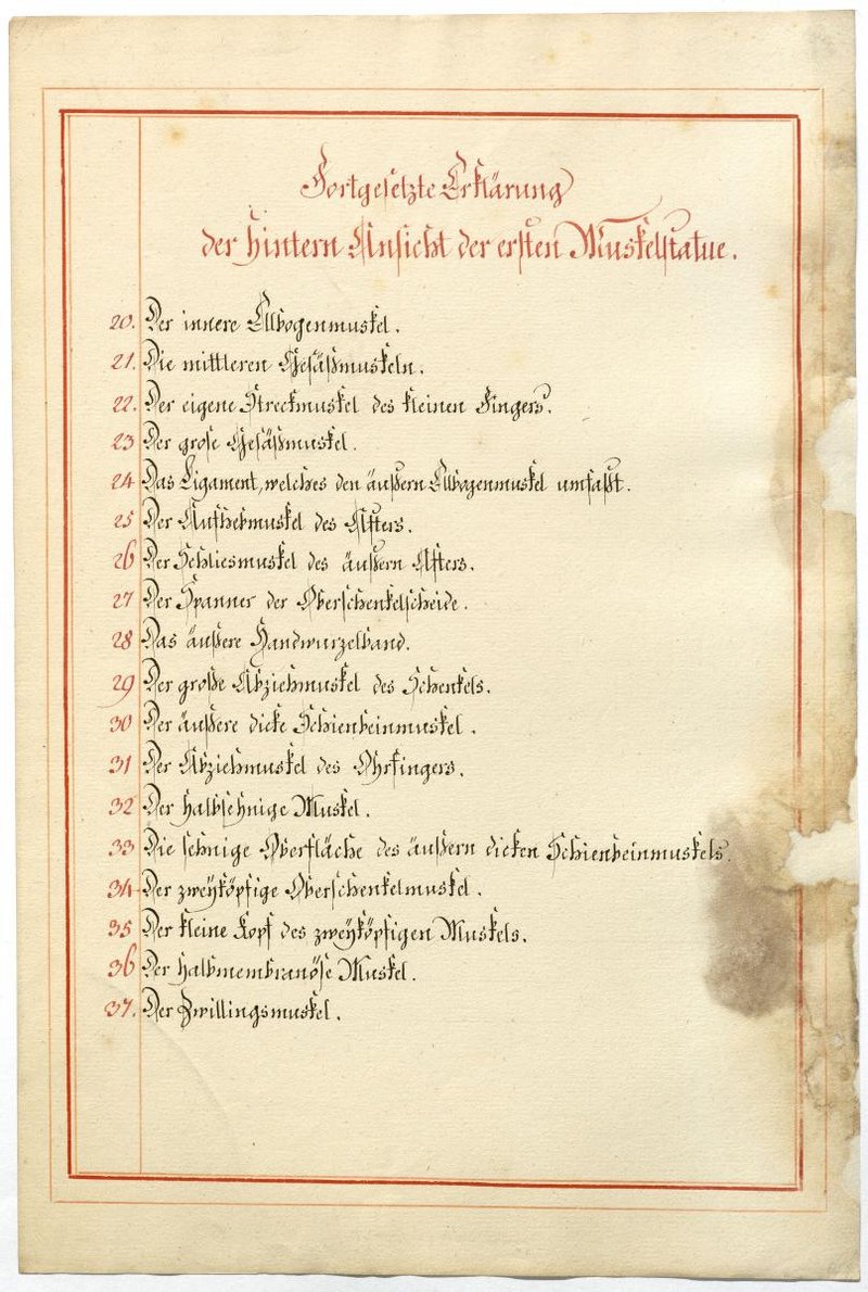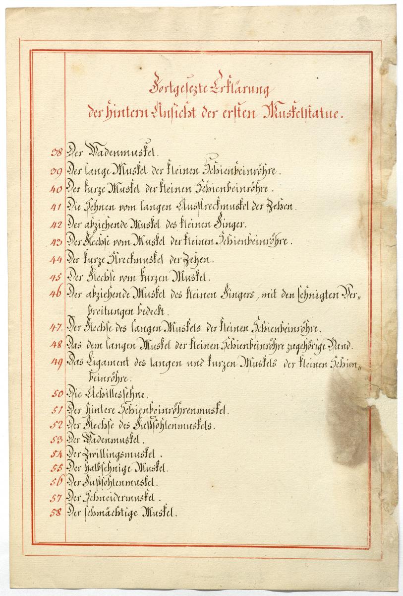 Der Text ist die ergänzende Beschreibung in deutscher Sprache zum anatomischen Wachsmodell der oberflächliche Muskelschicht.