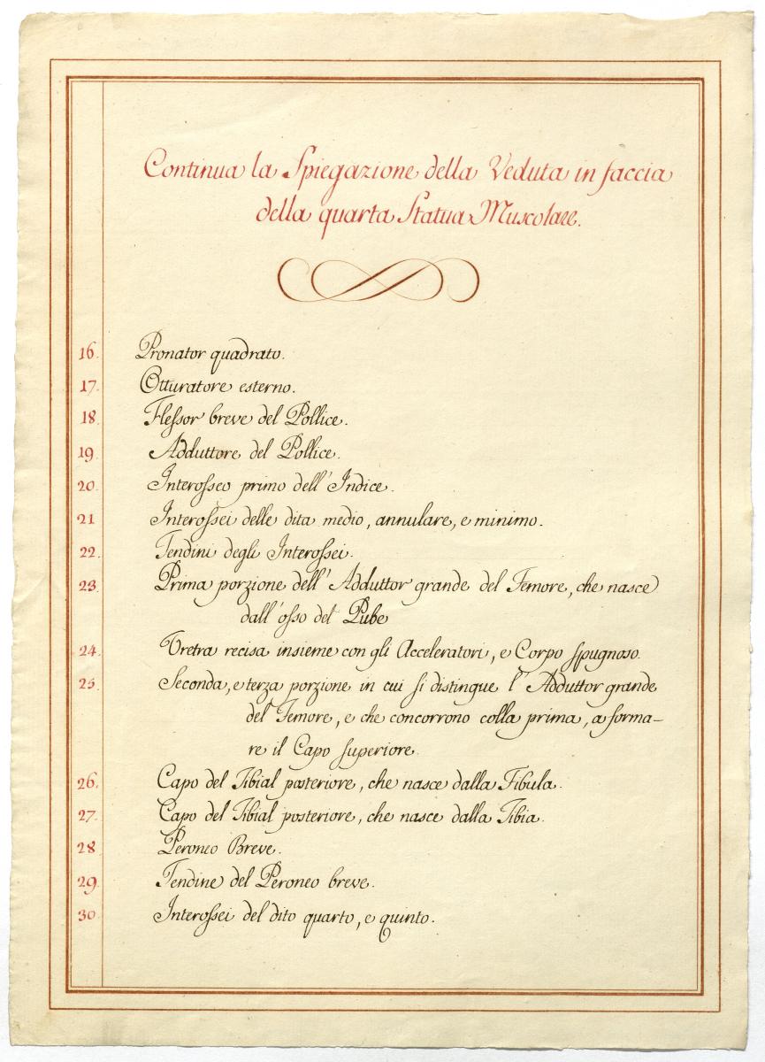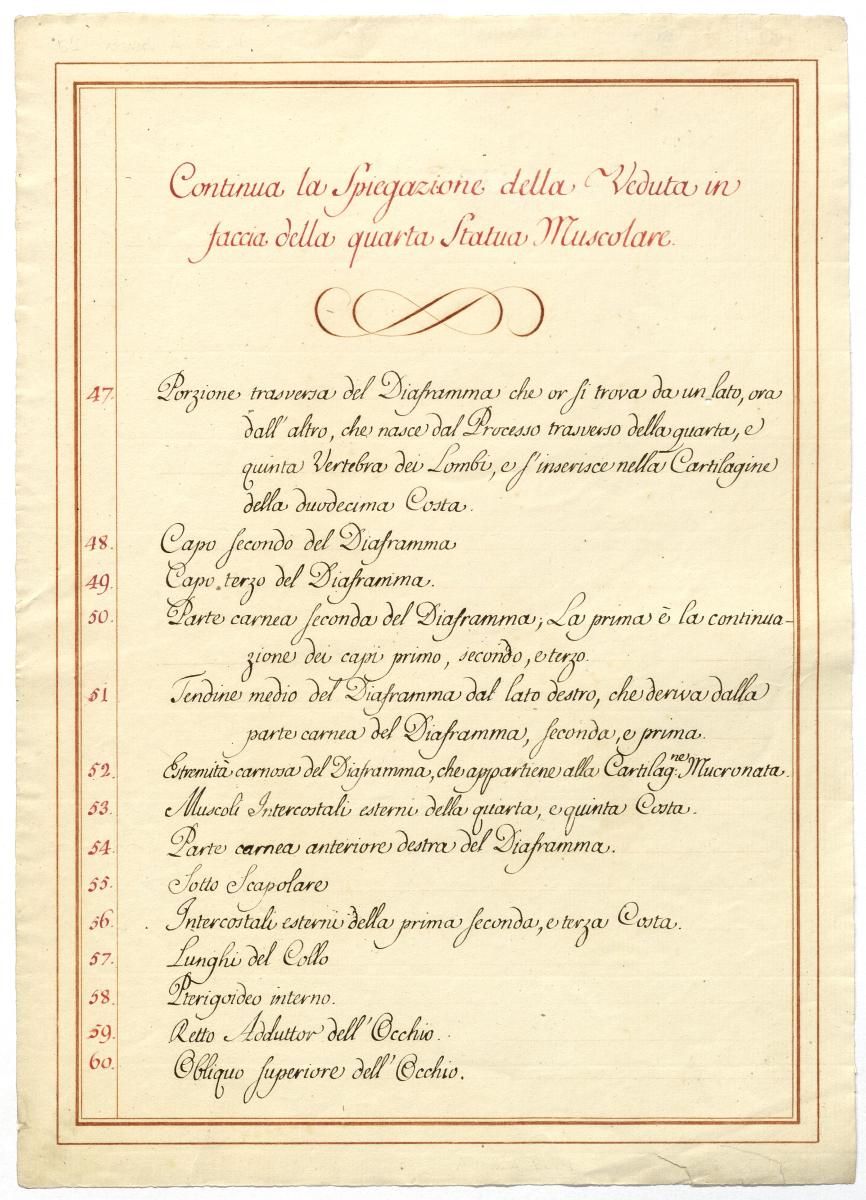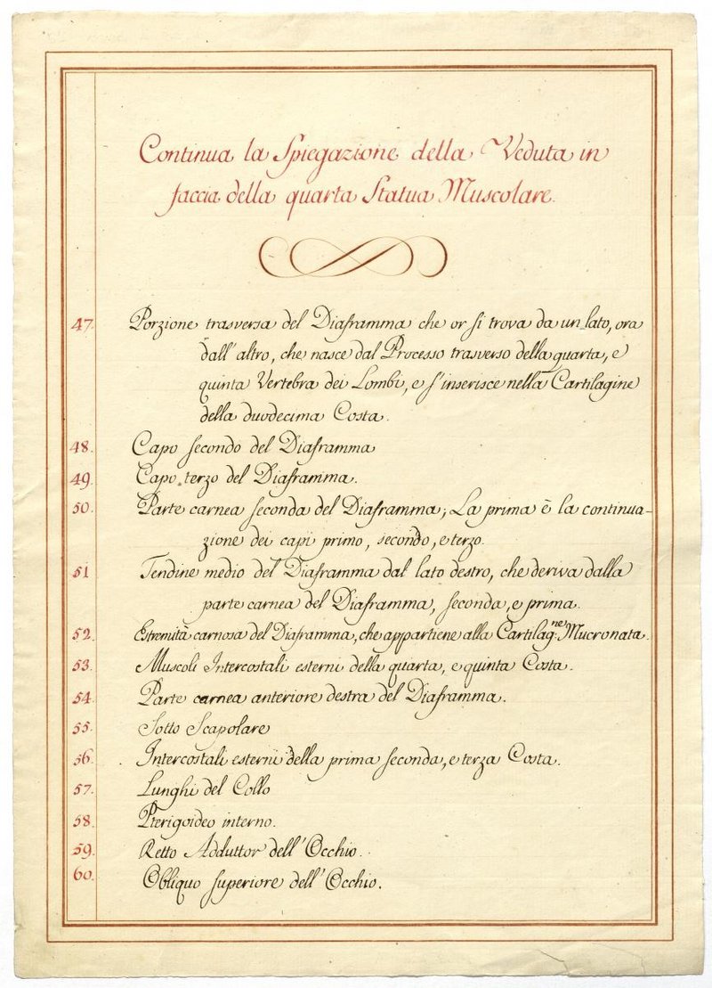 Der Text ist die ergänzende Beschreibung in italienischer Sprache zum anatomischen Wachsmodell der tiefsten Muskelschicht.