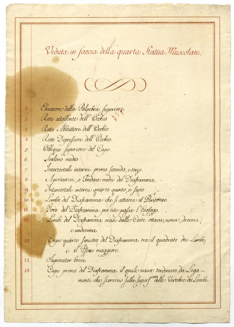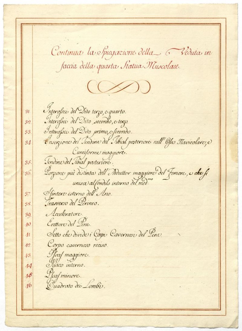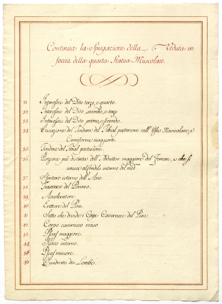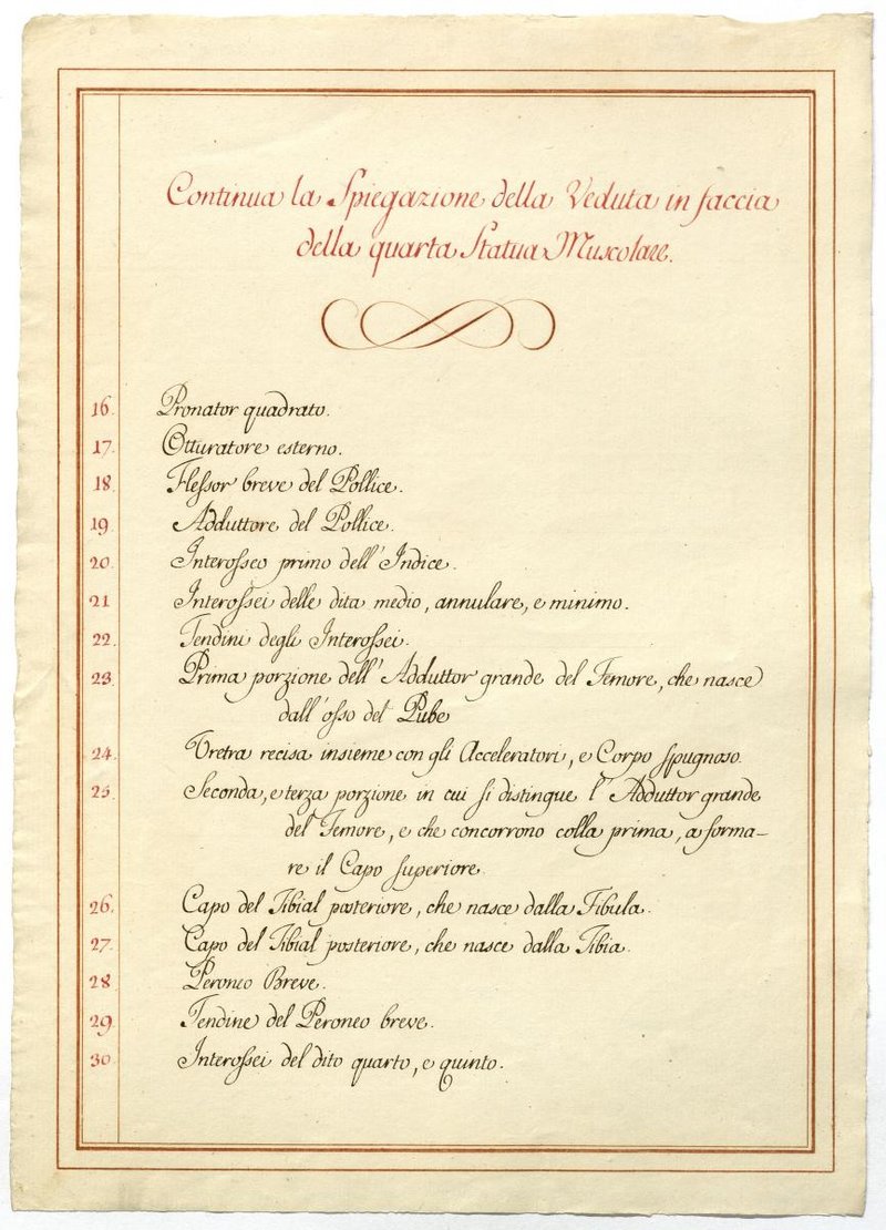 Der Text ist die ergänzende Beschreibung in italienischer Sprache zum anatomischen Wachsmodell der tiefsten Muskelschicht.