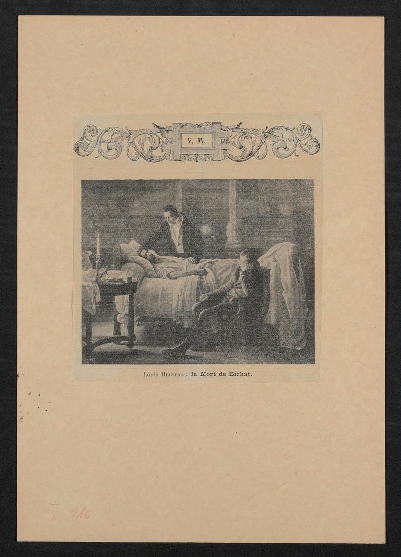 Ausschnitt aus: La Vie Medicale. Dem Bild lag ein Gemälde von Louis Hersent, betitelt mit la Mort de Bichat, als Vorlage zugrunde.