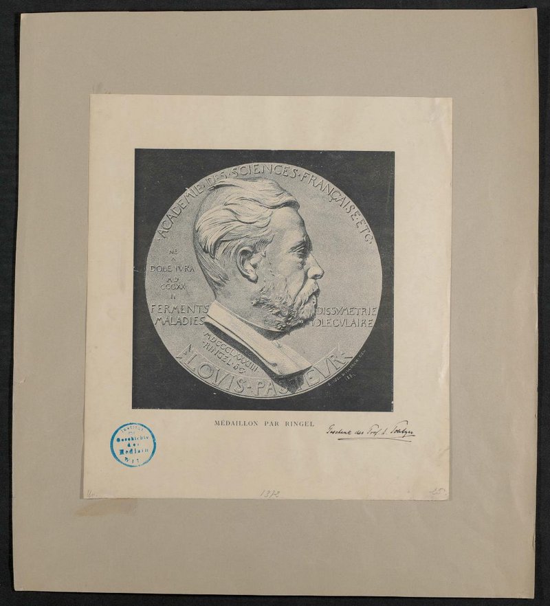 Die Medaille wurde 1884 angefertigt. Mit einem Stempel des Instituts für Geschichte der Medizin, Wien, versehen.