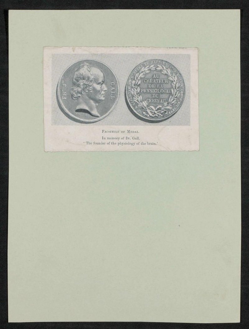Reproduktion einer Medaille zur Erinnerung an Franz Joseph Gall in einer unbekannten Zeitung.