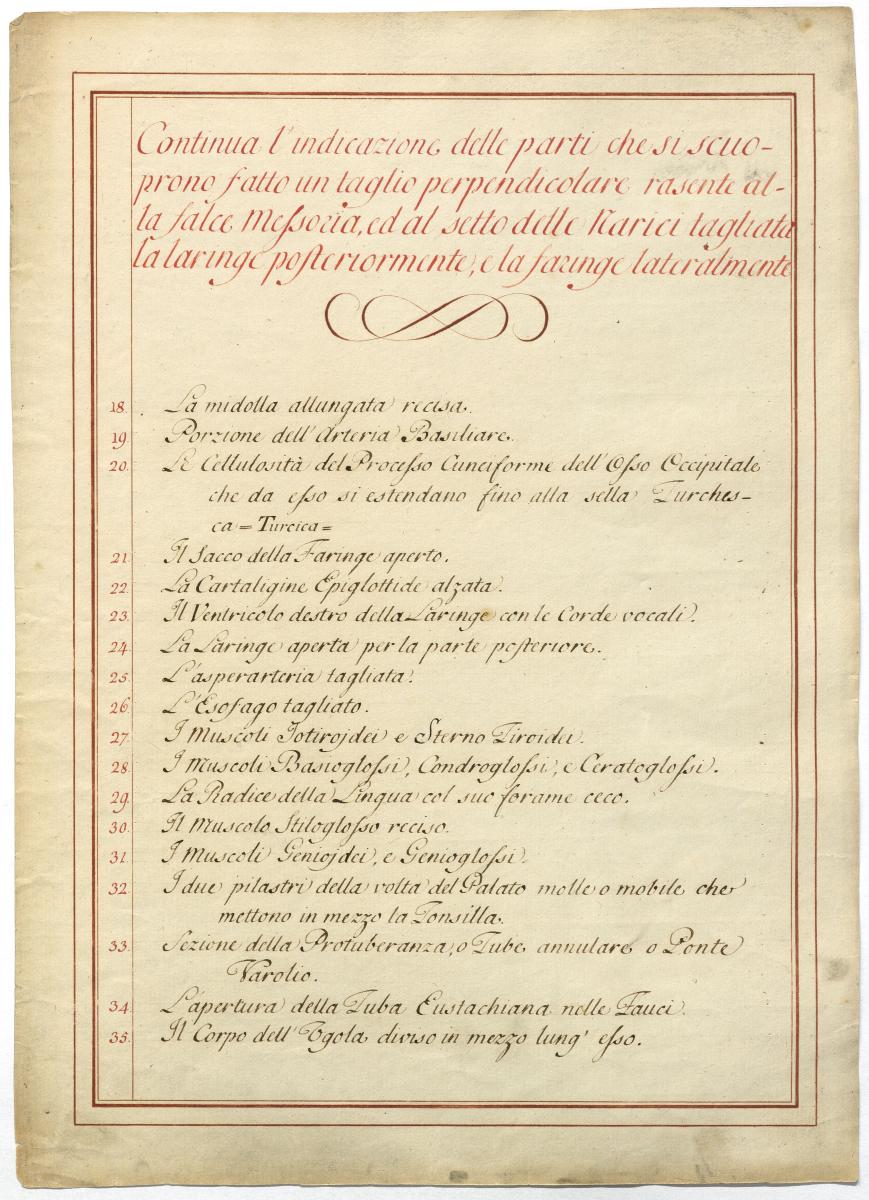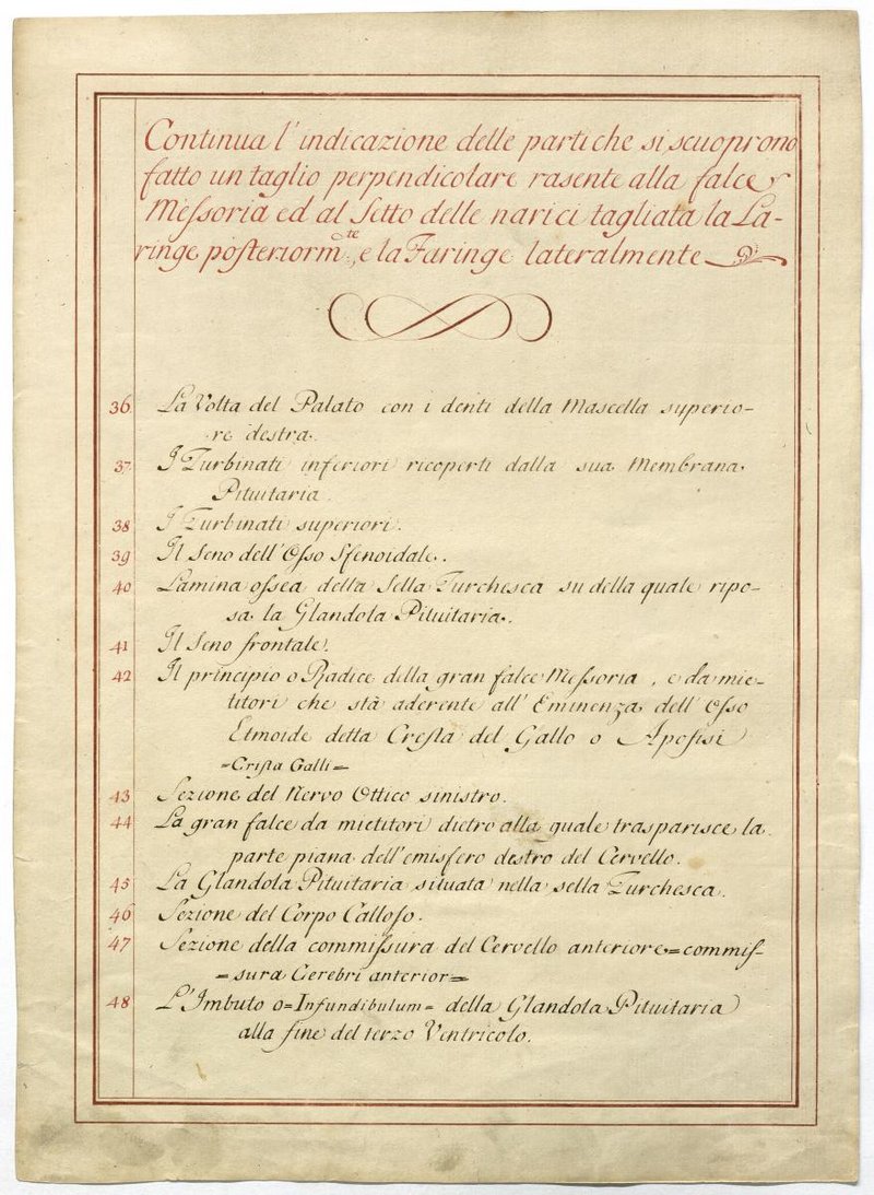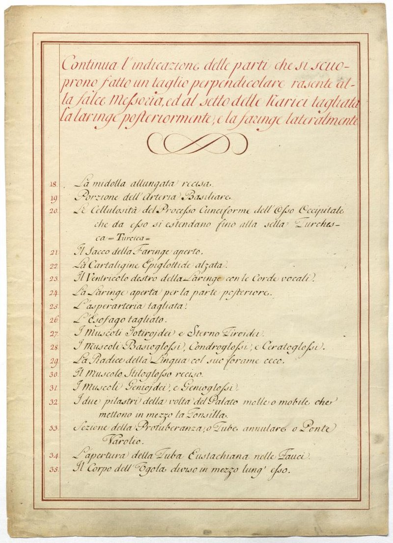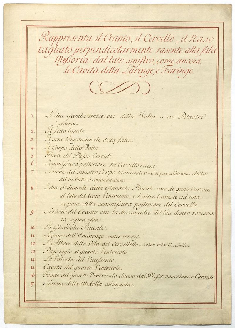 Der Text ist die ergänzende Beschreibung in italienischer Sprache zum anatomischen Wachsmodell des Hirnnerven.