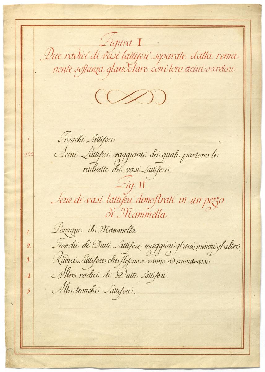 Der Text ist die ergänzende Beschreibung in italienischer Sprache zum anatomischen Wachsmodell der Brustdrüse.