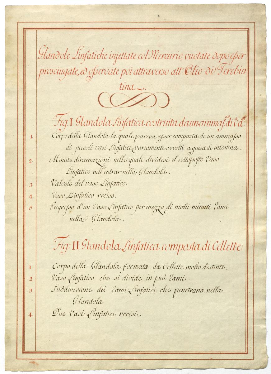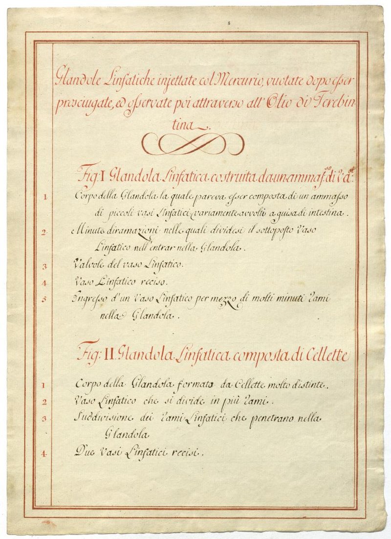 Der Text ist die ergänzende Beschreibung in italienischer Sprache zum anatomischen Wachsmodell der Lymphknoten.