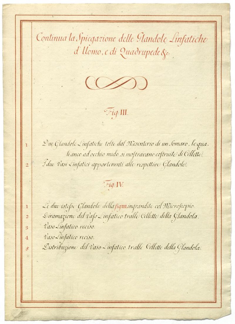 Der Text ist die ergänzende Beschreibung in italienischer Sprache zum anatomischen Wachsmodell der Lymphknoten.