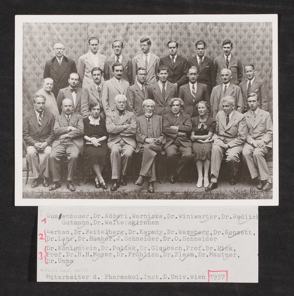 Reproduktion einer Fotografie aus dem Jahr 1937, die sich zum Zeitpunkt der Entstehung der Kopie im Besitz des Pharmakologischen Institutes befand.