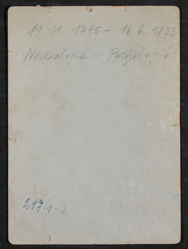 Die Vorlage war eine Lithografie, die im Königlichen Lithographischen Institut, Berlin, angefertigt und von August Hirschwald, Berlin, verlegt wurde. Rückseitig befindet sich ein Stempel der Gesellschaft der Ärzte in Wien, Wien. Neg III 125/4